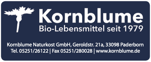 Auch kleineren Spendern für die Arbeit und Ziele des Vereins TEILBAR Schloss Hamborn e.V. sind wir sehr dankbar, wie der Kornblume, ein bekannter Naturkostladen im Paderborner Zentrum.